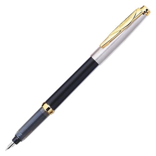Marca: Pierre Cardin Modelo: Momento Half Gold Composição: Resina/Metal Pena/material: Fina, em Aço Refil: Refil de tinta padrão internacional/Conversor + Tinta para caneta tinteiro Itens inclusos: Estojo + Conversor + 02 refis de tinta Garantia: 1 ano