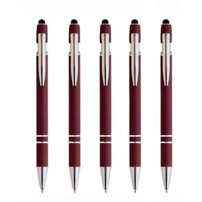 Caneta touch metálica kit com 5 unidades esferográfica-luxo Cor: vinho Bem vindo a nossa loja A lualki store tem os melhores produtos para seu uso. Se atentamos para total satisfação do cliente. Caneta metálica touchscreen sem gravação A caneta touch esferográfica 2 em 1 é perfeita para quem busca praticidade no dia a dia com um design elegante e funcional, ela combina a escrita suave de uma caneta esferográfica de ponta fina com a versatilidade de uma ponta touch, ideal para telas sensíveis de smartphones, tablets e outros dispositivos. Caneta metálica touchscreen com acabamento à borracha, acionamento por clique e carga esferográfica azul 1.0mm. Largura:1,10 Altura:13,90 Medidas aproximadas para gravação cxl :0,7 cm x 3,5 cm Peso aproximada:18 g Marca: Lualki Store Personalizados