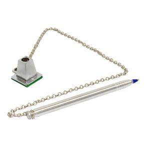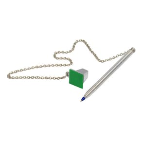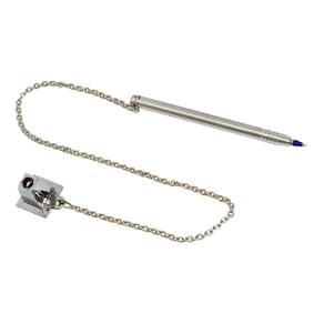 Cor disponível da base: PrataComprimento corrente: 50 cmTinta: AzulFixação: A base é fixada com fita adesivaRefil: Compatível com refil de caneta BIC cristalMaterial:- Base: chapa de ferro pintada ou cromada;- Corrente: corrente de ferro dupla com banho de cromo;- Tubo para caneta: tubo em alumínio polido.INFORMAÇÕES IMPORTANTES:- A(s) cor (es) dos produtos podem sofrer variação de tonalidade, de acordo com a configuração do seu dispositivo ou monitor. - O prazo de entrega informado no anúncio é apenas uma previsão, podendo sofrer alterações na data de entrega informada no ato da compra por motivo de força maior.
