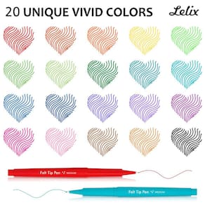 CORES VIBRANTES: O conjunto de canetas de feltro Lelix tem 20 cores brilhantes e vivas. A ponta de feltro versátil e as cores ricas podem criar uma impressão atraente e vibrante.