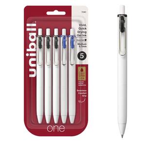 Pacote com 5 canetas Uniball One, canetas comerciais ultra médias de 0,7 mm, canetas de tinta de gel | Materiais de escritório vendidos pela Uniball são canetas, esferográficas, canetas coloridas, - O ponto médio de 0,7 mm equilibra entre detalhes e ousadia. - A tinta especialmente formulada permanece no topo das fibras em vez de ser absorvida pelo papel. - Design minimalista com um corpo branco suave e aderência de borracha integrada. - O clipe de bolso de arame funcional e forte abre para facilitar a fixação a documentos, pastas ou cadernos. - O indicador de cor na parte superior da caneta facilita a identificação da cor da tinta.