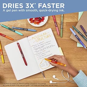 Espalhe alegria (não manchas) com canetas de gel joy de tinta de papel Mate. Com tinta de gel vívida que seca 3x mais rápido* para redução da mancha, é como uma festa na página onde manchas não são convidadas. A cor brilhante garante que sua escrita será brilhante e cheia de diversão. Totalmente embrulhadas com uma pegada de conforto, essas canetas de gel têm um estilo suave que mantém a alegria fluindo tão rápido quanto seus pensamentos. *Vs Piloto G2 com base em tempos secos médios de Preto, Azul, Vermelho e Verde. Os tempos secos individuais podem variar de acordo com a cor.