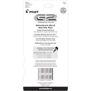 Pilot, Canetas rolo de gel premium G2, ponta ultrafina de 0,38 mm, pacote com 4, preta - Suave e duradoura: desfrute de uma experiência de escrita suave graças à tinta de gel que desliza sem esforço pelo papel; a G2 provou ser a caneta de tinta gel de maior duração para que você possa escrever mais sem ter que recarregar frequentemente (dados no arquivo) - Aderência confortável: um cabo de borracha contornado oferece suporte ergonômico, facilitando projetos de escrita longa - Versátil: perfeita para tarefas diárias de escrita, como fazer anotações e anotar listas de compras; a ponta G2 oferece linhas nítidas e limpas, ideais para escrever, desenhos complexos, desenhar, esboçar ou rabiscar - Recarregável e de secagem rápida: economize dinheiro e reduza o desperdício reutilizando e recarregando sua caneta retrátil com recargas Pilot G2 (vendidas separadamente); a tinta vibrante e de secagem rápida ajuda a evitar manchas e manchas - Potência para a caneta: Expresse-se sem esforço com a linha de ferramentas de escrita inovadoras da Pilot, incluindo tinta gel, apagável, esferográfica, canetas esferográficas, canetas-tinteiro e marcadores apagáveis a seco e muito mais