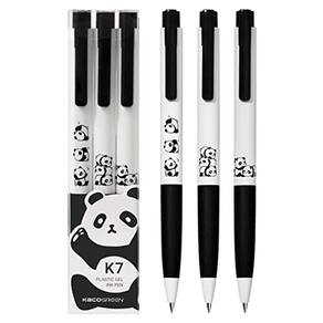 Canetas de tinta gel Kaco K7, conjunto de 3 peças, fofas canetas pretas Panda, 0,5 mm de ponta fina, toda tinta preta, material escolar de escritório