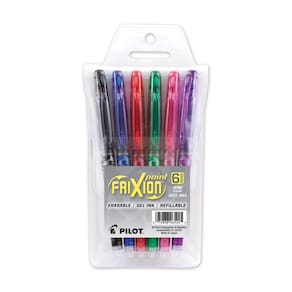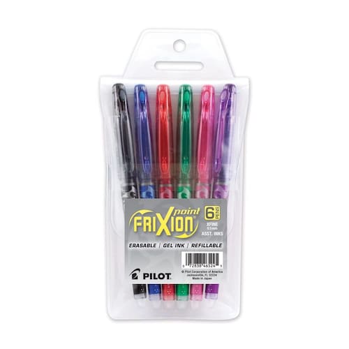 Pilot, FriXion Point Canetas de tinta de gel apagáveis e recarregáveis, ponta extrafina, 0,5 mm, pacote com 6, cores diversas - Escrita sem desconforto: escreva, apague e reescreva repetidamente sem danificar seus documentos; a tinta termossensível exclusiva desaparece completamente com o atrito de apagamento - Design inovador: a tecnologia patenteada Synergy Tip proporciona durabilidade e escrita incrivelmente suave; variedade de canetas multicoloridas em 1 pacote conveniente - Versátil: inspire talento e imaginação com esta coleção colorida; perfeita para edição, calendários e anotações em agendas; o ponto de precisão extra fino permite que você aperfeiçoe todos os detalhes - Recarregável e de secagem rápida: refis (vendidos separadamente) economizam dinheiro; tinta de secagem rápida evita manchas e manchas; pacote com 6 unidades inclui canetas pretas, verdes, azuis, roxas, vermelhas e rosa - Potência para a caneta: Expresse-se sem esforço com a linha de ferramentas de escrita inovadoras da Pilot - incluindo tinta gel, apagável, esferográfica, esferográficas e canetas-tinteiro - além de marcadores, marcadores apagáveis a seco e muito mais
