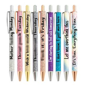 ??Detalhes da embalagem?Obtenha 9 canetas esferográficas Funny Week Mood em uma variedade de cores, incluindo ouro rosa, prata, ouro, rosa, azul, roxo, cinza e 2 cores do arco-íris. Além disso, uma bolsa de canetas conveniente para mantê-los todos juntos.