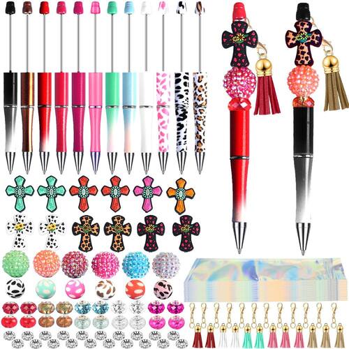12 canetas com contas, contas a granel e miçangas de - ?Canetas com contas a granel?Você receberá 112 peças de presentes temáticos de Jesus, incluindo 12 canetas com contas, 52 contas, 12 borlas, 12 contas focais de silicone cruzadas, 12 peças de fechos e 12 sacos de embalagem; quantidade abundante atenderá às suas necessidades de uso diário e substituição. - ?Design atencioso com contas?Estes refis de canetas com contas são projetados em estilos interessantes de contas, você pode girar o corpo para criar diferentes tipos de visuais, combinar com suas contas favoritas para tornar sua caneta mais atraente e substituí-las simplesmente removendo o refil da parte inferior. - ?Contas de silicone cruzado?Você não só pode usar essas contas de silicone para fazer joias como canetas com contas, pulseiras, colares, brincos e chaveiros. As possibilidades são infinitas, permitindo que você libere sua criatividade. Você pode usar contas de plástico para artesanato, borlas e pingentes para decorar as canetas de contas, o que é clássico e moderno, para que você possa criar suas canetas esferográficas sozinho e aproveitar a diversão de bricolage - ?Material confiável?A capa dessas canetas com contas é feita de material plástico, não é fácil de deformar ou quebrar, a sensação de escrita é suave, não é fácil de vazar tinta, ajudará você a carregá-las e escrevê-las por um longo tempo - Presentes ideais: estes kits de canetas com contas são adequados para uma variedade de locais, como salas de aula, escritórios, exames, sessões de autógrafos, casas, festas, casamentos, escritórios e assim por diante, para melhorar seu gosto e deixar uma impressão elegante