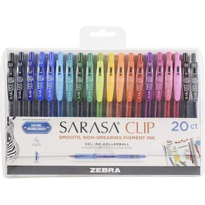 A caneta de gel retrátil Zebra Pen Sarasa Clip adiciona um deleite colorido ao seu trabalho escrito à mão. A tinta resistente à água, sem ácido e com qualidade arquivística oferece beleza duradoura às suas palavras e imagens. A ponta fina de 0,5 mm permite um fluxo uniforme e uma escrita delicada. Este pacote de 20 lindos tons (vermelho, vermelho, laranja, amarelo, verde claro, verde, viridiano, azul verde, azul claro, azul claro, azul claro, azul, cobalto, azul preto, roxo, magenta, rosa, rosa claro, marrom, cinza e preto) oferece uma bela variedade de opções e inclui uma bolsa para fácil armazenamento. O exclusivo clipe de jacaré se encaixa facilmente em bolsos, cadernos e fólios. Impressione seu amigo por correspondência, melhore seu jogo de diário com marcadores ou preencha seu diário com uma experiência de escrita confiável e continuamente confiável. Desfrute da precisão de uma caneta de tinta gel em sua casa e escritório, escrevendo com cores vibrantes e energéticas.
