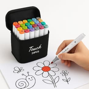 Kit de Canetas Marcador Permanente – 24 Cores com EstojoDeixe sua criatividade correr solta com este kit incrível de 24 marcadores ponta dupla! Cada caneta tem uma ponta grossa para cobrir grandes áreas e uma ponta fina para detalhes precisos, perfeita para colorir, desenhar e ilustrar com perfeição.O design quadrado facilita o manuseio e evita que os marcadores rolem da mesa, garantindo conforto e praticidade. Ideal para artistas, estudantes ou qualquer pessoa que ama colorir – seja em anime, quadrinhos, livros de colorir ou design de moda.Além disso, o kit vem com um estojo preto elegante, perfeito para guardar e levar suas canetas para qualquer lugar.Especificações:Tinta à base de álcool, ideal para papelEspessura da linha: 1mm (fina) a 6mm (grossa)24 peças, ponta duplaPart Number: 843347cor da Base das canetas brancas ou pretas conforme disponibilidade do estoqueCor do  estojo produto: Preto e Branco (enviado conforme estoque disponível)