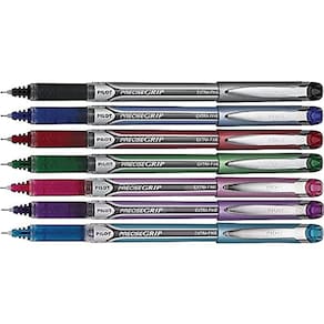 Pilot, Canetas esferográficas de tinta líquida Precise Grip, ponta extrafina, 0,5 mm, cores diversas, pacote com 7