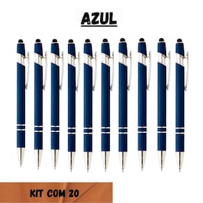 Caneta esferográfica 2 em 1 com ponta touch. Design elegante e funcional. Escrita suave com ponta fina. Ponta touch ideal para telas sensíveis. Acabamento em borracha. Acionamento por clique. Carga esferográfica azul 1.0mm.Vendido e entregue por Olist Store