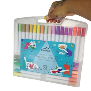1 Estojo Canetinha Caneta Marcador 60 Cores Tinta Acrilica Permanente