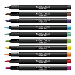 As canetinhas hidrográficas Faber-Castell da linha SuperSoft tem seu design arrojado e moderno, com a ponta pincel brush supermacia, perfeita para técnicas de Lettering e desenhos artísticos. A embalagem é reutilizável e 100% reciclável e a tinta é lavável e atóxica.
