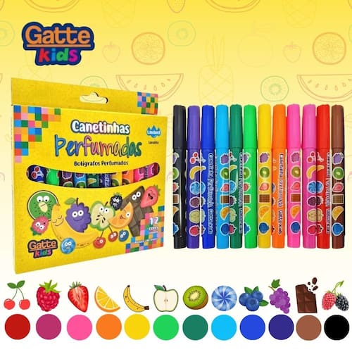 Transforme atividades de colorir em momentos mágicos e perfumados com a Caneta Hidrocor Canetinha 12 Cores Perfumada da Gatte.