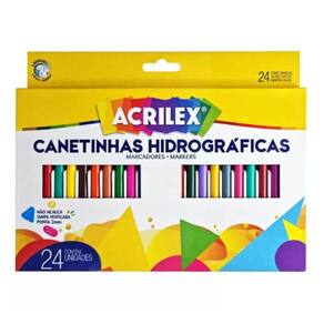 **AVISO: ESTAMOS TRABALHANDO NORMALMENTE COM TODOS OS ENVIOS***Descrição do produtoCaneta hidrográfica ACRILEX 24 cores, com corpo arredondado em plástico que garantem maior firmeza na pega, possui tinta de qualidade que garante cores mais vibrantes. Ideal para uso em trabalhos escolares. NÃO ACALCA - TAMPA VENTILADA - PONTA 2MM