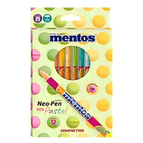 Canetinha Hidrográfica Mentos 12 Cores Pastel com Cheirinho - Compactor