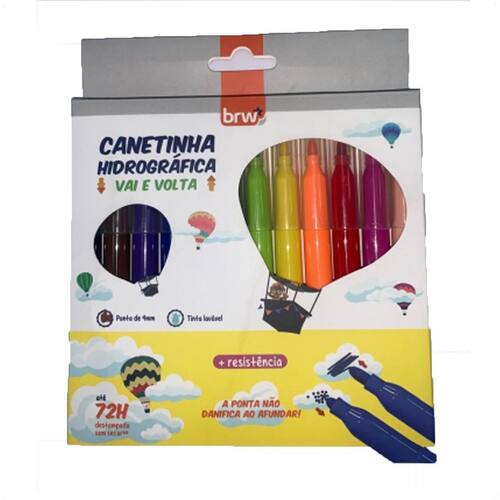 Canetinha hidrográfica vai e volta. Mais resistência, a ponta não danifica ao afundar até 72horas destampada sem secar. Ponta de 4mm e tinta lavável. Ponta resistente, não tóxico, grip triangular. Canetinha permite ficar destampada sem secar por até 72horas em locais arejados e à sombra. Não deixar o produto destampado no sol ou em ambientes de calor excessivos. Tinta lavável na maioria dos tecidos. Em caso de contato com a pele, lavar com água morna e sabão. Não colocar o produto na boca.