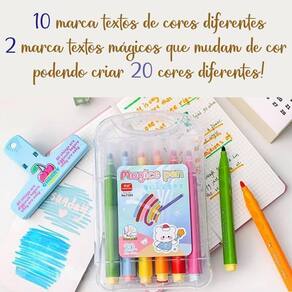 Canetinha Marca Texto Mágico Muda De Cor Kit Com 10 Cores