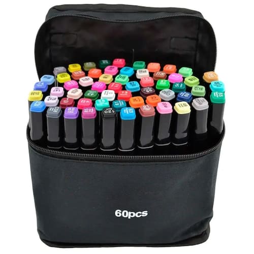 Canetinhas Coloridas Kit 60 Unidades Pintura Escolar Perfeito para quem procura um produto de alta qualidade, este conjunto de canetas é ideal para uma variedade de atividades artísticas, como arquitetura, moda, desenho de mangá, coloração de mandalas, e também é ótimo para iniciantes no mundo da arte. O kit inclui marcadores com pontas duplas, totalizando uma variedade de pontas diferentes. Esses marcadores são à base de álcool, livres de odor, tornando-os adequados até mesmo para uso infantil. CARACTERÍSTICAS: Tipo: Conjunto de Canetas de Dupla Ponta Modelo: Estilo Copic Fácil de abrir e usar Marcadores em cores permanentes Ideal para: Desenhos animados, arquitetura, cenários, confecções e muito mais. Acompanha: Estojo 60 unidades de canetinhas