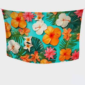 Canga/Pareô Praia e Piscina Floral Azul/Branco/Laranja 1,00x1,50m - Fera Print - Laranja - 150