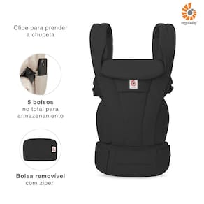 Prático e resistente, o Ergobaby Omni Deluxe é lavável à máquina. Para maior durabilidade, recomenda-se prender todos os ganchos, fivelas e fechos antes da lavagem.
