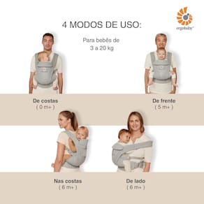 Canguru para bebê ergonômico 4 posições omni deluxe cotton ergobaby O canguru ergobaby omni deluxe cotton é a escolha perfeita para quem busca um canguru ergonômico para bebê, combinando design sofisticado, respirabilidade superior e praticidade no dia a dia. Perfeito para recém-nascidos até a primeira infância de 3 kg a 20 kg aprox. , acompanha cada fase do crescimento com suporte e estilo. Conta com 4 quatro posições de transporte 1- modo de costas 0m+ , criança de costas ao movimento 2- modo de frente 5m+ , criança de frente ao movimento 3- modo nas costas 6m+ , criança posicionada nas costas dos pais, com visão de frente ao movimento 4- modo de lado 6m+ , criança encaixada de lado aos pais, tendo visão ao movimento. Tecnologia softtouch tm cotton com a malha mais respirável 100% algodão tecido de alta ventilação garante frescor durante todo o dia, mesmo nos climas mais quentes. Seu bebê permanece confortável e protegido, enquanto o suporte ajustável para cabeça e pescoço proporciona o alinhamento ideal desde os primeiros meses. Capuz que protege a criança contra o sol e o vento e garantindo mais privacidade durante a amamentação. Para maior segurança em passeios ao entardecer ou à noite, ideal para passeios, viagens e momentos ao ar livre. Funcionalidade é outro destaque do omni deluxe. Com áreas de armazenamento, incluindo bolsa removível, bolso traseiro com zíper, bolsos elásticos e laterais, e clip para prender a chupeta, você terá tudo o que precisa sempre à mão. Prático e resistente, o ergobaby omni deluxe é lavável à máquina. Para maior durabilidade, recomenda-se prender todos os ganchos, fivelas e fechos antes da lavagem. Com ele, cada passeio se transforma em uma experiência segura, confortável e inesquecível para pais e bebês. Principais características: - idade recomendada: de 0 a 4 anos 3 kg a 20 kg aprox. - 4 quatro posições de transporte - voltado para dentro 0m+ , voltado para fora 5m+ , transporte no quadril 6m+ e transporte nas costas 6m+ - tecnologia softtouch tm cotton: materiais naturais e respiráveis: tecido macio, leve e confortável para o bebê e para os pais. - posição ergonômica em m: garante o alinhamento saudável dos quadris em todas as formas de uso. - ajustável ao crescimento do bebé, sem necessidade de - conforto superior: alças acolchoadas com marcações indicadoras para facilitar o ajuste e cinto lombar ergonômico que distribui o peso e protege a região inferior das costas. - capuz para proteção contra o sol e vento - almofada de apoio para a cabeça e o pescoço - design adequado para amamentação discreta em qualquer lugar - mini bolsa removível com zíper - suporte lombar ergonômico para aumentar o conforto e reduzir a tensão nas costas - controles deslizantes intuitivos para mudanças de posição voltadas para dentro e para fora sem esforço - bolsos de armazenamento para manter seus itens essenciais ao seu alcance - lavável à máquina: fácil de cuidar e manter limpo - disponível em 3 cores: preto, azul, bege Especificações técnicas: - conteúdo da embalagem: 1 canguru omni deluxe cotton ergobaby - dimensões do produto aberto: l 43,0cm x a 50,0cm aprox. - peso: 1,560kgs - composição: tecido softtouch tm cotton: 100% algodão - : 12 meses contra defeito de fabricação direto pelo fabricante - código do fabricante: bcodconyx/ bcodcmidblu/ bcodccam - ean: 1220000209985/ 1220000209992/ 1220000210042 - marca: ergobaby Imagens meramente ilustrativas, cores e modelos podem variar de acordo com o lote do fabricante.