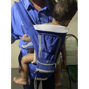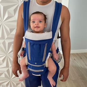 Fitas largas nos ombros, ajustáveis, acolchoadas e respiráveis que permitem o melhor ajuste ao condutor. Serve tanto para o papai quanto para a mamãe!