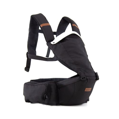5 modos de uso: apoio para o recém-nascido; com encosto e o bebê virado para os pais ou para o mundo; como banquinho para carregar os maiorzinhos ou nas costas