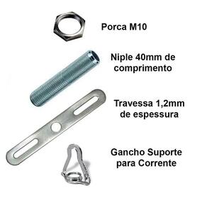 - Kit de instalação incluso: acompanha travessa, niple, porca e gancho para corrente