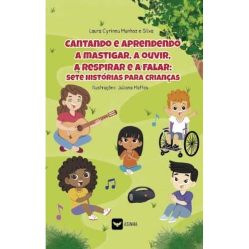 O livro Cantando e aprendendo a mastigar, a ouvir, a respirar e a falar: sete histórias infantis apresenta, de maneira lúdica, a importância da mastigação legal, dos cuidados com a audição, cuidados com a voz e com a respiração para o desenvolvimento da fala e crescimento saudável. Também trabalha, de maneira consciente e afetiva, a retirada do uso da chupeta e mamadeira, prevenindo alterações dentárias e musculares. Cada história finaliza com uma canção que sistematiza o aprendizado e apresenta o link de acesso à canção. A parte teórica e estratégias dinâmicas para o desenvolvimento dos temas são encontradas na obra Cantando e aprendendo a mastigar, a ouvir, a respirar e a falar: guia para a promoção da saúde em instituições educacionais. O guia pode ser utilizado por profissionais da educação, da saúde e, por apresentar linguagem clara e acessível, também por pais de crianças pequenas. Lá também são encontradas as cifras e partituras das canções.
