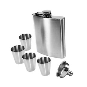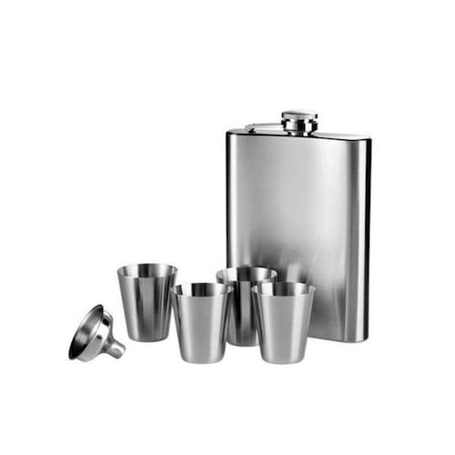 Este kit é super sofisticado e ideal para presentear. Cantil ideal para carregar o seu whisky preferido para qualquer lugar e copo shot para brindar qualquer ocasião. O kit possui um mini funil para preencher a garrafa e copos shot, ambos os itens são de inox. Especificações: Material: Inox Medidas: Caixa 23cm L x 16,5cm C x 4cm A, Cantil 13,5cm C x 9,5cm L, Copos 4,5 cm A x 3,5cm L Peso Total: 350g Capacidade: 230ml Itens Inclusos: 01 Funil 01 Cantil 04 Copos 01 Caixa Estojo