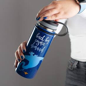 - Design divertido: a cantina azul apresenta o gênio mágico e diz "Back By Cosmic Demand".