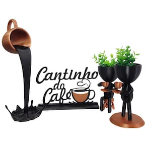 Cantinho café flutuante derramando café dolce gusto pt/cobre Nosso kit acompanha: 1 xícara flutuante com aproximadamente 24,8cm de altura 1 base do letreiro removível com aproximadamente 17cm de largura e 11cm de altura 1 bob sentado bebendo café com aproximadamente 13cm s/considerar as plantas 1 bob em pé bebendo café com aproximadamente 15cm s/considerar as plantas Obs. já acompanha as plantinhas artificiais Letreiro com base removível, possibilitando seu uso tanto em pé quanto fixado na parede com fita dupla face, se preferir. Obs. Não acompanha fita. O material empregado é o pla poliácido láctico , um plástico biodegradável e seguro para a saúde. Nosso produto chega montado, apenas o letreiro que vai solto da base, mas é simples o encaixe. Cuidados e conservação: as peças podem apresentar alterações quando expostas a altas temperaturas ou à luz solar intensa por longos períodos. do vendedor: 3 meses Marca: Não Informado