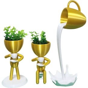 Decoração criativa e cheia de personalidade Este conjunto exclusivo combina uma peça elegante em formato de xícara derramando líquido, criando uma ilusão de movimento, com dois Vasinhos Bob Robert Tomando Café Com Plantas adoráveis em forma de personagens que seguram xícaras. Perfeitos para quem deseja um toque moderno e divertido na Decoração, são ideais para mesas, prateleiras ou espaços de convivência. Feitos com design inovador, eles transformam qualquer ambiente em uma verdadeira obra de arte Os Vasinhos Bob Robert Tomando Café Com Plantas e a Xícara Flutuante são perfeitos para quem valoriza a fusão entre natureza e design clássico.