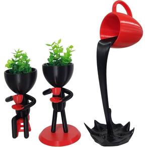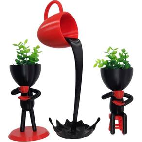 Decoração criativa e cheia de personalidade Este conjunto exclusivo combina uma peça elegante em formato de xícara derramando líquido, criando uma ilusão de movimento, com dois Vasinhos Bob Robert Tomando Café Com Plantas adoráveis em forma de personagens que seguram xícaras. Perfeitos para quem deseja um toque moderno e divertido na Decoração, são ideais para mesas, prateleiras ou espaços de convivência. Feitos com design inovador, eles transformam qualquer ambiente em uma verdadeira obra de arte Os Vasinhos Bob Robert Tomando Café Com Plantas e a Xícara Flutuante são perfeitos para quem valoriza a fusão entre natureza e design clássico.