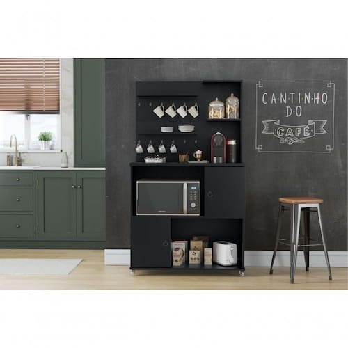 O Cantinho do Café Aconchego possui 4 prateleiras, 2 nichos e também 2 portas com muito espaço para organizar seus utensílios e tornar sua vida mais prática e ágil.