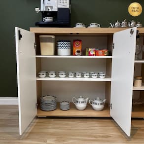 Produzido em MDP com revestimento BP, oferece resistência, durabilidade e fácil manutenção para o uso cotidiano. Um móvel versátil que une organização, charme e funcionalidade, tornando a pausa para o café ainda mais especial.