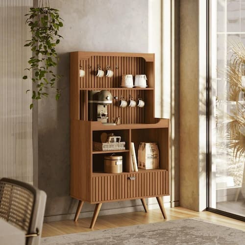 QUANTIDADE DE NICHOS: 3 | PRODUTO: CANTINHO DO CAFÃ? | COMPRIMENTO DO PRODUTO COM EMBALAGEM (CM): 93 | PESO DO PRODUTO COM EMBALAGEM (KG): 32 | CORES DO PRODUTO (FILTRO DE CORES): JEQUITIBA RIPADO | ESTADO DE ORIGEM: SP | LARGURA DO PRODUTO COM EMBALAGEM (CM): 44 | GARANTIA DO FABRICANTE: 3 | MATERIAL PRINCIPAL: MDF | INSTRUÃ?Ã-ES/CUIDADOS: Limpar com pano macio e seco, nÃo utilizar produtos abrasivos. | QUANTIDADE DE CAIXAS NA EMBALAGEM: 2 | MARCA: CASAH | PRODUTO PRECISA DE MONTAGEM?: Sim, a montagem à facil mas sugerimos a contrataÃÃo de um montador profissional para a montagem do produto. NÃo nos responsabilizamos por danos causados no ato da montagem. | PESO DO PRODUTO (KG): 32 | QUANTIDADE DE PORTAS: 1 | QUANTIDADE DE PRATELEIRAS: 2 | DESCRIÃ?Ã?O DO TAMANHO: 150X80X41 | COR PREDOMINANTE: JEQUITIBA RIPADO | ALTURA DO PRODUTO COM EMBALAGEM (CM): 70 | COMPRIMENTO DO PRODUTO (CM): 41 cm | ALTURA DO PRODUTO (CM): 150 cm | LARGURA DO PRODUTO (CM): 80 cm | REQUER MONTAGEM?: SIM | inclui manual de montagem?: sim