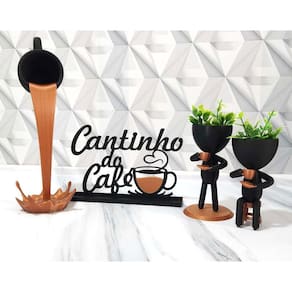 Cantinho do café flutuante derramando café dolce gusto pt/co Nosso kit acompanha: 1 xícara flutuante com aproximadamente 24,8cm de altura 1 base do letreiro removível com aproximadamente 21cm de largura e 13cm de altura 1 bob sentado bebendo café com aproximadamente 13cm s/considerar as plantas 1 bob em pé bebendo café com aproximadamente 15cm s/considerar as plantas Obs. já acompanha as plantinhas artificiais Letreiro com base removível, possibilitando seu uso tanto em pé quanto fixado na parede com fita dupla face, se preferir. Obs. Não acompanha fita. O material empregado é o pla poliácido láctico , um plástico biodegradável e seguro para a saúde. Nosso produto chega montado, apenas o letreiro que vai solto da base, mas é simples o encaixe. Cuidados e conservação: as peças podem apresentar alterações quando expostas a altas temperaturas ou à luz solar intensa por longos períodos. do vendedor: 3 meses Marca: Não Informado