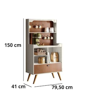 Dimensões do Produto Montado: Altura: 150 cm Largura: 79,50 cm Profundidade: 41 cmMateriais e Estrutura: Produzido em MDF usinado, garantindo acabamento sofisticado Pés em madeira maciça, conferindo maior estabilidade e resistência Estilo retrô, com efeito ripado em Tauari para um visual elegante 1 porta basculante, proporcionando praticidade no armazenamento Gancho de ferro, ideal para pendurar canecas e utensílios Amplo tampo, perfeito para acomodar cafeteira, xícaras e objetos decorativos Kit de montagem incluso, com todas as ferragens necessárias Pintura UV, oferecendo um acabamento resistente e durávelBenefícios e Funcionalidades