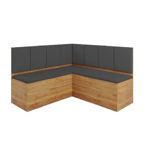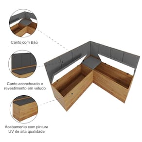 Canto Alemão Com Baú Liebe Veludo Viero Madeirado / Cinza