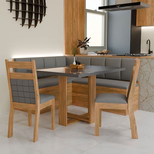 O(a) Canto Alemão Prisma com 2 Cadeiras Marrom/Grafite/Veludo Grafite - Loja é produzido em MDF, MDP e Espuma na escala de brilho Semi-Brilho, e possui um grau de dificuldade de montagem: Médio.