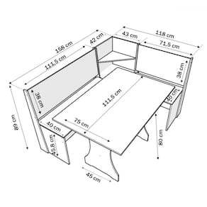 - Acompanha: Canto Alemão, 2 Cadeiras, Mesa, Kit Ferragens e Manual de Montagem