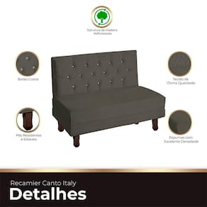 Elevando a sofisticação do seu espaço, apresentamos o Recamier Estofado Italy. Com um design estiloso, moderno e sofisticado, este recamier é mais do que um móvel, é uma expressão de elegância. Detalhes em captonês ao longo do encosto, complementados por botões de cristais, conferem um toque único. Sua versatilidade permite adornar não apenas quartos, mas também salas, recepções, cozinhas e restaurantes, proporcionando uma decoração inigualável. O Recamier Italy é o complemento perfeito para quem busca um toque de refinamento e estilo em qualquer ambiente. Invista em elegância com este móvel único.