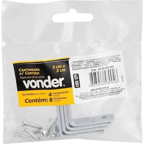 Conteúdo da embalagem: 1 Pacote com 4 cantoneiras e 8 parafusos.