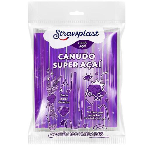 - O pacote contém 100 unidades do Canudo Super Açaí Strawplast Roxo 10mm.