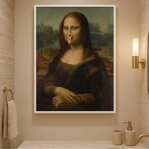 Canvas Banheiro Monalisa Divertido 70x50cm Mold Branca