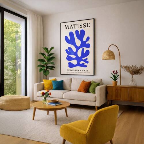 Canvas Matisse Papiers Découpés Azul 90x60cm Mold Branca