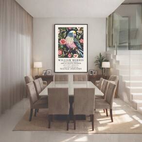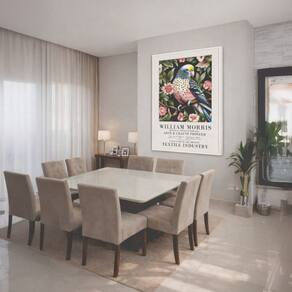 Canvas William Morris Periquito Flores 40x30cm Mold Preta