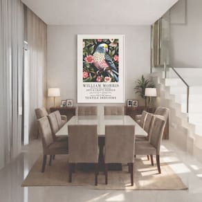 Canvas William Morris Periquito Flores 90x60cm Mold Branca